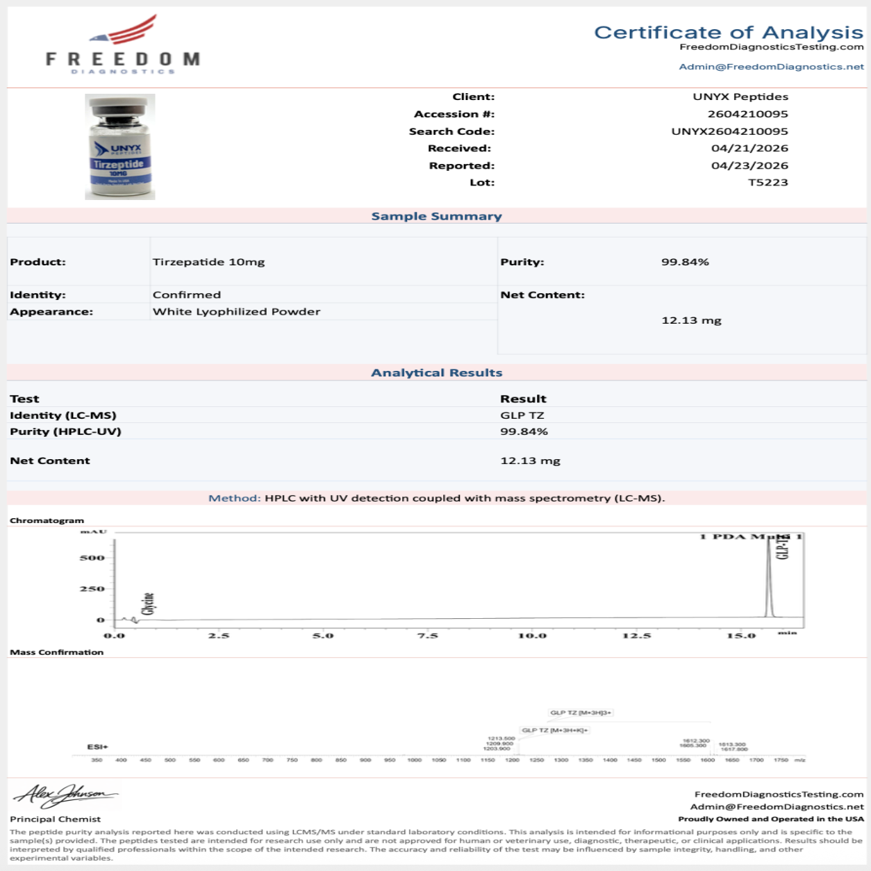 — Sarah M.As a researcher I require the highest standards. UNYX delivers every time — purity is consistently at or above 99%. Highly recommend.